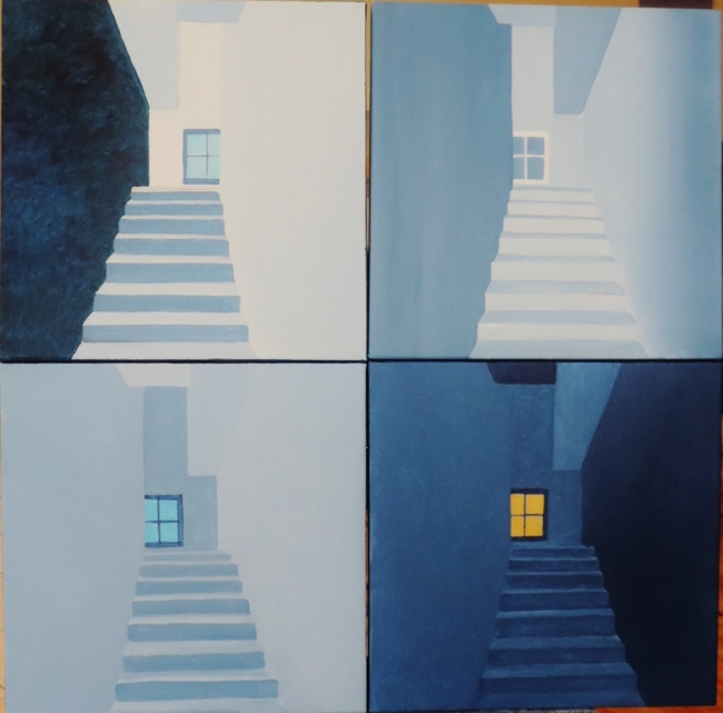 composition 4 toiles assemblées,, reprise du même.