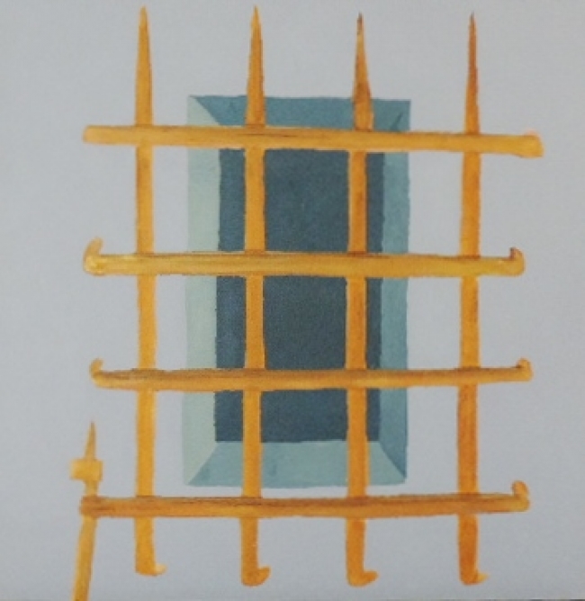 Composition de 3 toiles « Grilles et fenêtres », 50 x 50 cm, 2013-2014.