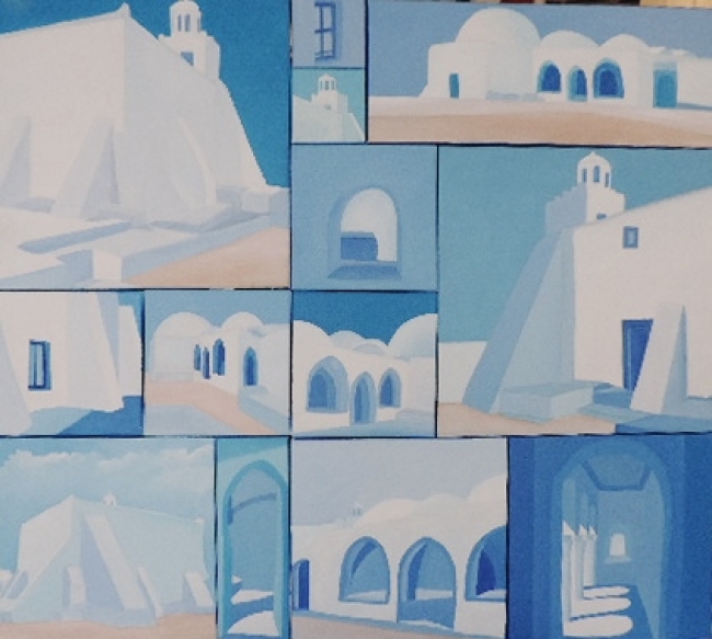 Djerba tunisie, Composition Mosquée Fadhloun. 2014. 12 éléments 13 pièces, 90x90 cm.